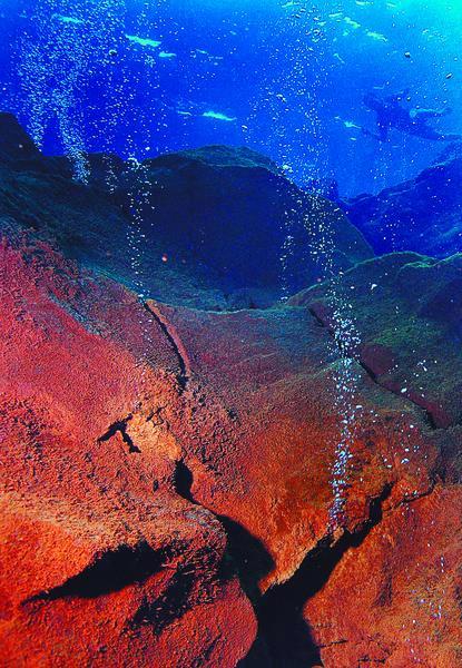 The discovery of underwater mountains in the waters west of Sumatra formed by different processes. This mountain is a mountain of mud that form the boundary plate meeting. Gas bubbles out smoke line. Sunlight is very pretty around 37 degrees celsius-38 celsius.di region around the exit bubble point. See the valley and the hills are formed from rock formations in various forms, ranging from small to large.